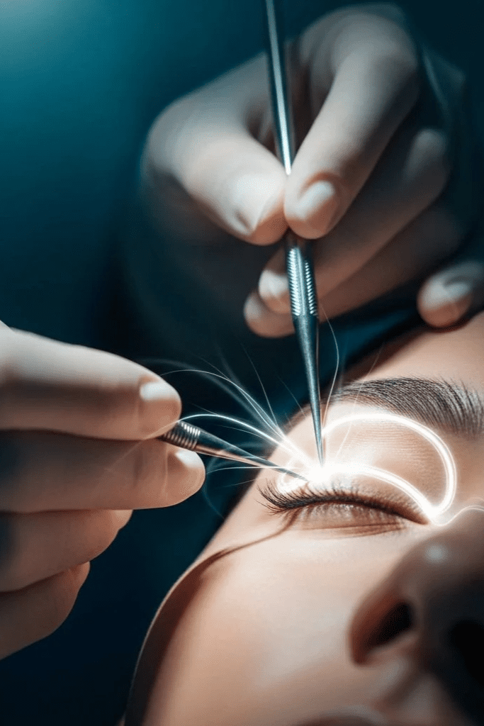 Incisions are closed with fine sutures placed in natural eyelid creases to minimize visible scarring.